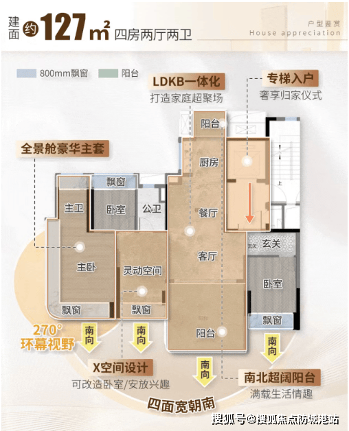 高品质住宅:低密度设计,专梯专户,南北对流双阳台,提供高品质居住体验。