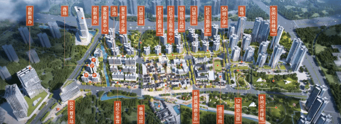 星河·盛世锦城注重绿化建设,整体绿化率为35%,并精心打造屋顶花园及垂直绿化,营造出一片都市中的绿色天地。小区内部规划有岭南风情商业街,总建筑面积约4万平方米,满足居民日常生活需求。同时,项目还自带1.6万平方米的社区商业,进一步丰富了生活配套设施。