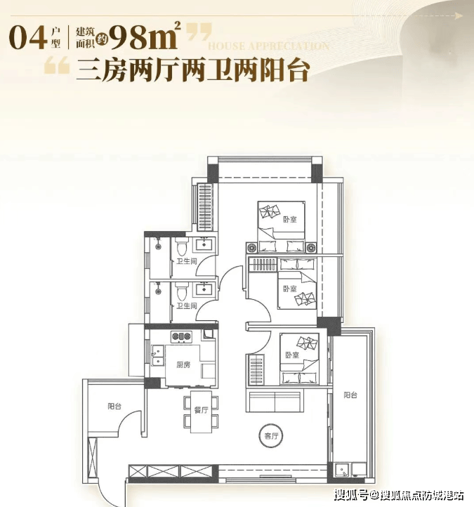 项目当前在售户型包括98㎡、110㎡、128㎡和138㎡等多种面积段,均为三至四+1房设计,实用率高达100%以上。特别值得注意的是,部分户型采用了全新规设计,如主卧配备270°无柱飘窗,客厅阳台尺度大幅增加等,提升了居住舒适度。此外,各户型均采用高标准精装交付,选用知名品牌材料,确保家居品质。