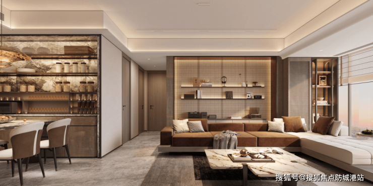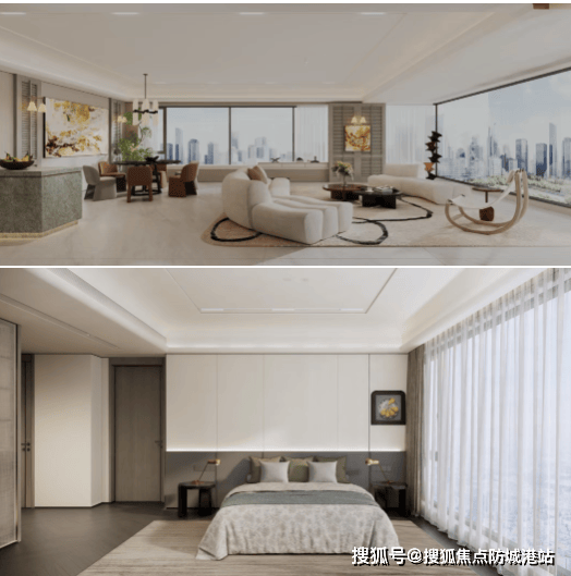 建面约160㎡四空间两厅两卫(江境),两梯三户,得房率超120%,装修标准为意式高定风,强调艺术性、功能性与个性化的统一;去繁从简摒弃冗余装饰,以流畅线条构建空间秩序,注重比例与尺度的精准把控,追求“少即是多”的纯粹美感,营造自然和谐的氛围;以开放式结构打破空间隔阂,强调通透感,大面积落地窗引入自然光,搭配罗马帘平衡私密性与美感;采用门墙一体化设计,增强视觉连贯性,同时优化空间利用率,呼应精英人群对秩序感的需求;采用低饱和度主调,以黑白灰、大地色系(奶白、咖色)奠定沉稳基调,局部点缀金属色提升奢华感;户型采用五开间朝南设计,拥有一体化巨幕客厅、南北双阳台与南向双套房,空间开阔,布局合理,既能满足圈层社交需求,又能保障家庭成员的私密性,适合高端精英家庭。