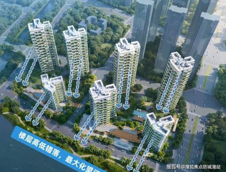 - **布局与视野**:项目采用围合式与中央园林搭配的布局,使每一户的眺望视野最大化,实现户户南向采光。前排小高层与后排高层错落分布,楼栋扭转一定角度,前后排单位不同程度望河景、拥园景。同时创新性设计T3、T5楼栋分布,提高居住舒适度,避免对望尴尬。