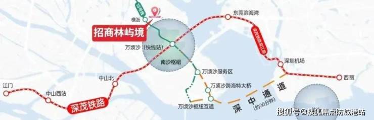 - **跨城交通便捷**:今年10月深中通道开通,通过地铁18号线与横沥站接驳,加之南中高速万顷沙支线计划年内通车,横沥岛到深圳宝安最快36分钟。同时,横沥岛到前海的公交车始末站已开通,经由深中通道,每天有跨市定制公交接送广深居民,最快1小时42分可直达。正在建设中的深茂铁路未来也将对接地铁18号线,从横沥站出发,两站约14分钟可到东莞滨海湾,三站约20分钟可到深圳机场。此外,规划中的横沥岛、横沥东站两大枢纽将融入TOD模式,地铁15号线、NS1、NS2、知南快线都会在此经过,交通十分便捷。