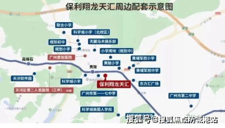 保利翔龙天汇所在区域是科技创新轴的核心板块,汇聚天河智慧城和黄埔科学城高端产业及金融总部。天河智慧城已入驻约 2500家企业,包括网易、酷狗等科技龙头,未来将建设成为广州创新型企业孵化培育高地。黄埔科学城万亿级产业集群,高技术产业产值占全市 72.6%,为业主圈层提供了高质量职场与社交环境。