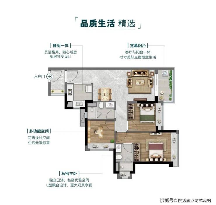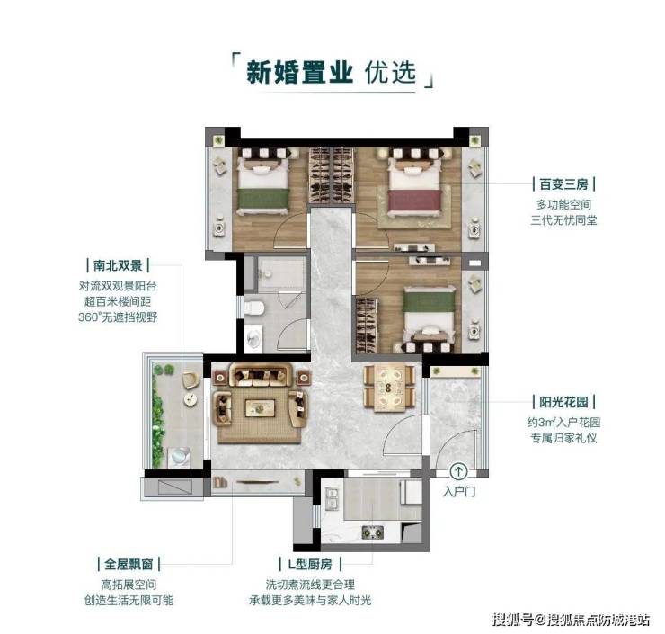 建面约85㎡单边对流三房两厅两卫:空间宽敞明亮,南北通透,适合小家庭或首次置业者。