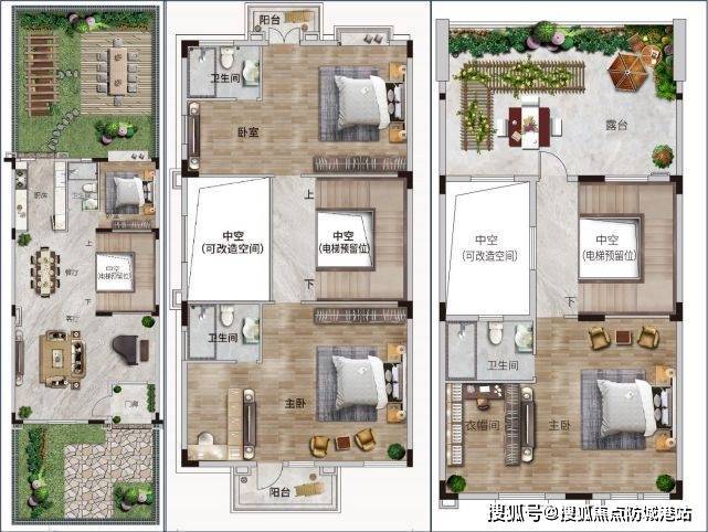 四联二层半,建筑基底卙地约100㎡,6.6米开间客厅面积:65㎡,双主套设计带约67-125㎡超大花园露台+中空赠送面积约50㎡284㎡联排别墅