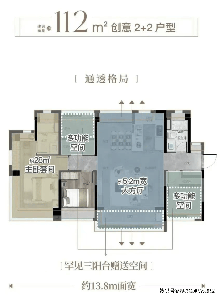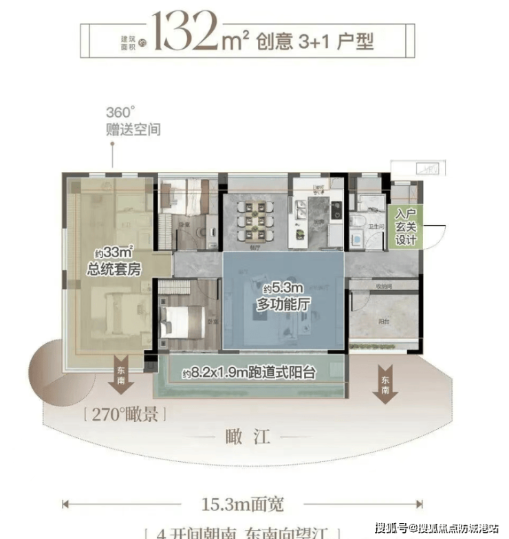 产品打造上,项目规划 4 栋 31-32 层住宅,共 461 户,采用两梯三户或两梯四户的官方规划设计,居住密度适中,私密性与舒适度兼具。主力户型涵盖 87-134㎡三至四房,全部采用东南或西南朝向,经广州市规划和自然资源局官方核验,户型实用率突破 110%,远超同区域多数楼盘,其中 87㎡三房做到四开间朝南、3.8 米奢阔横厅,112㎡四房拥有 5.2 米方厅 + 三阳台赠送,134㎡四房配备 8.2 米超长观景阳台 + 33㎡酒店式主卧,270° 环幕景观飘窗刷新区域居住标准。