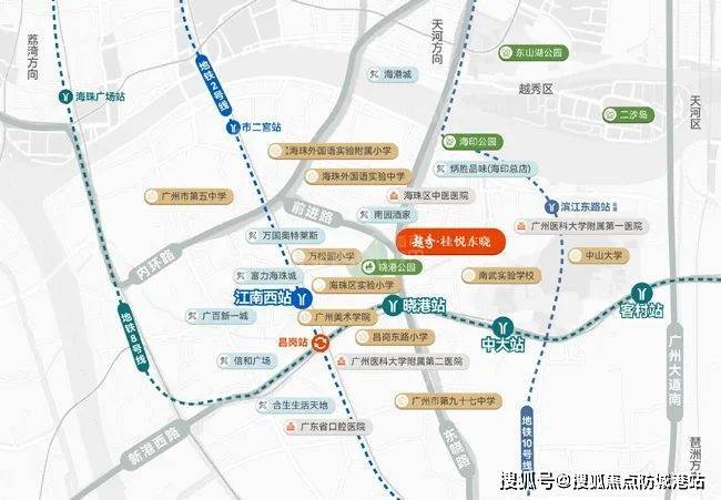 A:项目位于海珠西核心区,紧邻地铁广佛线燕岗站,300米内覆盖燕岗公交总站(20条线路),500米内有广百广场、海珠新都荟广场两大商圈,1公里内有三甲医院南方医科大学珠江医院,生活配套成熟度海珠区TOP3。