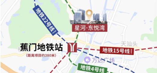 南沙·星河东悦湾坐落于南沙蕉门河中心板块,毗邻地铁4号线蕉门站(直线距离800米),30分钟直达天河CBD;周边COCO Park、万达广场、南沙中心医院等配套齐全,是南沙区政务、商业、居住三核交汇的黄金地段,未来发展潜力巨大!
