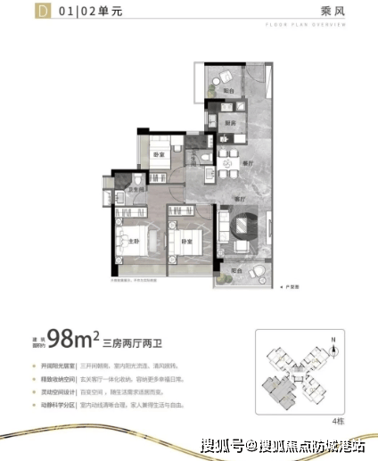 98-101㎡三至四房:实用率较高,部分户型能做到南向三房或四房。