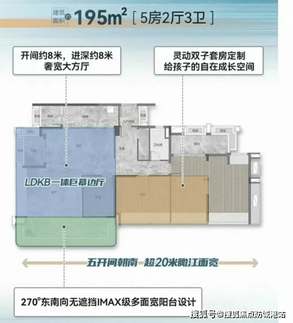 五开间朝南,一体化巨幕客厅,南北双阳台,南向双套房设计,空间宽敞明亮,功能分区明确,进一步提升居住品质。
