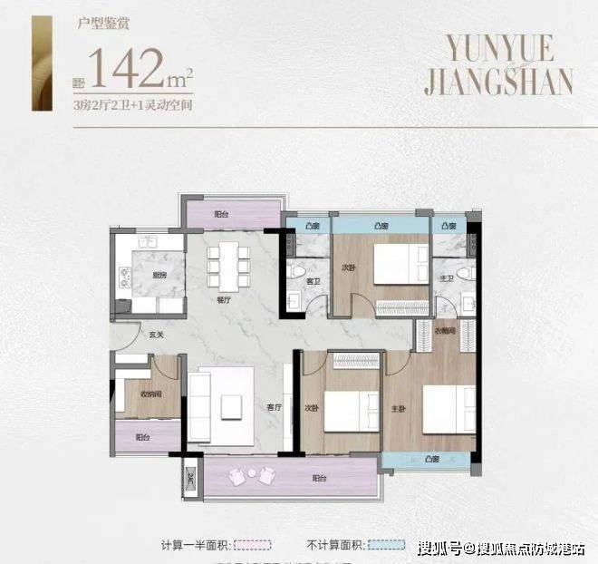 142㎡四房两厅两卫:此户型是为追求极致居住体验的高端人士量身定制。南北对流双阳台设计,保证空气流通与采光通风,6.7m 南向阳台视野开阔,可欣赏到更广阔的景观。四开间朝南,让更多房间享受阳光照射,营造温暖明亮的居住氛围。阔绰主卧配备独立卫生间、衣帽间和宽敞的休息区,给予主人极致的居住体验。次卧和其他房间宽敞舒适,可根据需求灵活设计为客房、儿童房、书房、健身房等多功能空间,满足家庭多样化生活场景。整体户型空间布局大气磅礴,注重细节与品质,为业主打造尊贵、舒适的居住空间。