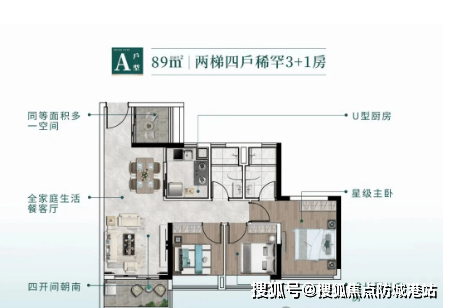 项目主打 89-112㎡全南向户型,均采用 “+1 房” 创新设计,在有限面积内实现居住功能最大化。89㎡3+1 房户型为市场稀缺的四房配置,做到四开间朝南,客厅及三间卧室均能获得充足采光,主卧为套房设计并配备独立卫浴,入户花园可改造为书房或儿童房,满足多人口家庭需求。实测数据显示,该户型客厅面宽达 3.6 米,比同面积段竞品多出 0.3-0.5 米,空间通透感显著提升。
