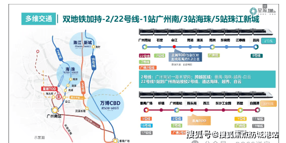 项目坐拥地铁22号线陈头岗站上盖优势,A2/B2出口直连社区,实现“下楼即进站”的极致通勤体验。22号线作为全国首条连接广州与深圳的城际地铁,设计时速160公里,3站达海珠南洲,5站直达珠江新城冼村站,未来北延段预计2025年底贯通至机场北,形成“穗深1小时生活圈”。此外,通过番禺广场站可无缝换乘3号线、7号线、18号线及广佛线,快速覆盖全城。自驾方面,项目被南大干线、东晓南放射线、东新高速三大快速路环绕,15分钟可达万博CBD,30分钟通达珠江新城、佛山顺德或南沙,交通能级在番禺乃至广州南部首屈一指。