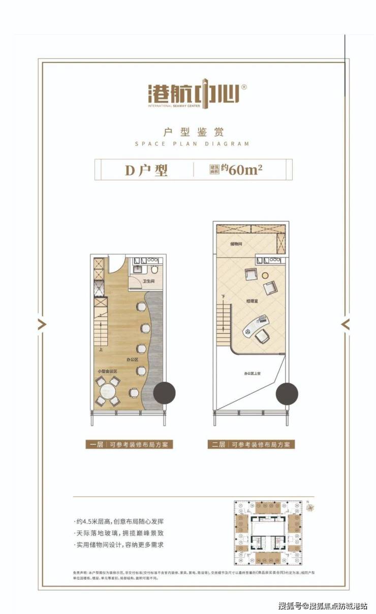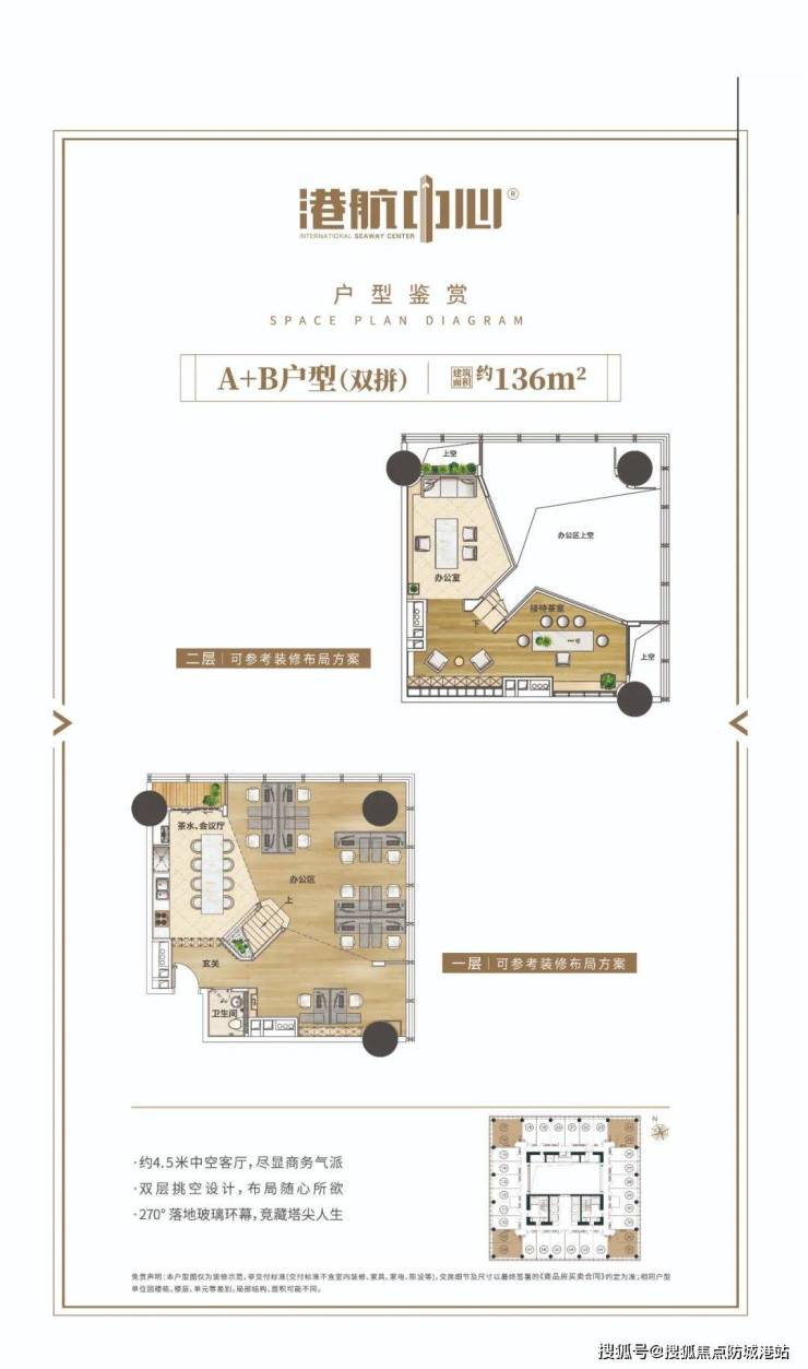 项目一期目前在售250米高区60-136m²小型办公楼,层高4.5米,空间间隔灵活、利用率高,满足企业对个性化及功能多元化的追求。