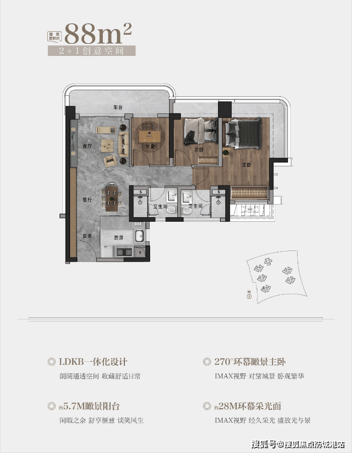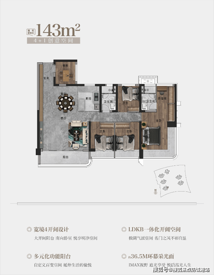 高效空间利用:长阳台、大飘窗设计,提升空间利用率。