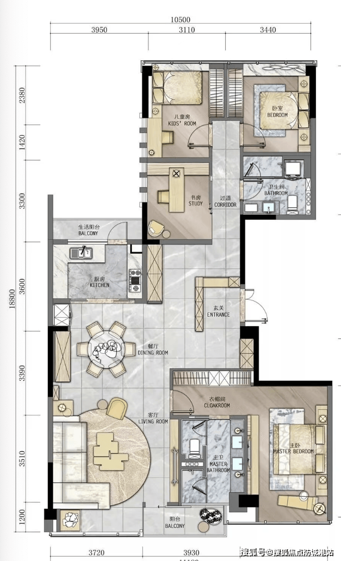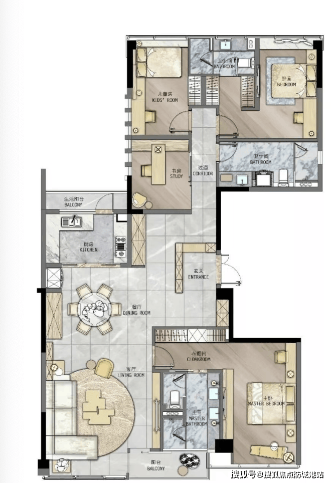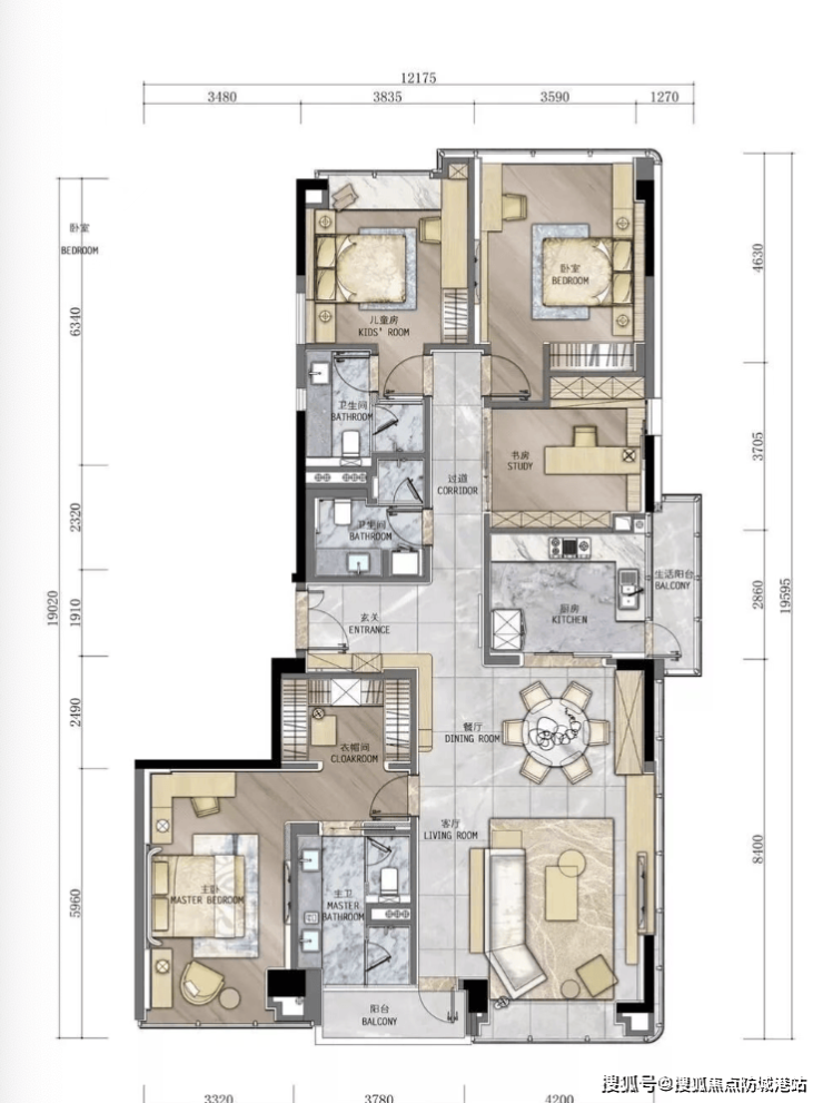 建面约207㎡终极四房:楼王单位,拥有超大的面宽和进深,营造出宫殿般的居住体验。270°环幕视野,部分高层单位可远眺白云山美景,低楼层则直面私属园林。双套房设计,每个主卧都配备了独立卫生间和衣帽间,充分满足了三代同堂或多孩家庭的多元化需求。LDK(客餐厨)一体化设计,扩大了公共活动区域,让家庭互动更加频繁温馨。U型厨房设计,操作动线流畅,让烹饪成为一种享受。每一平米都物尽其用,彻底消除了公摊面积的痛点,得房率远超同类产品。