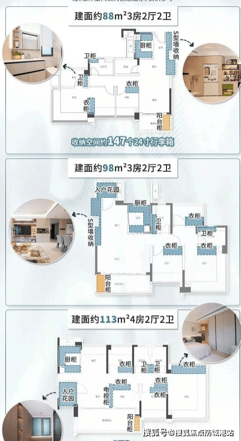 所有户型均为南向设计,主力面积段包括88㎡、98㎡、113㎡三房至四房,符合当前主流刚需刚改需求。项目采用新规产品标准,注重收纳空间与功能布局,实用率表现优于传统户型。
