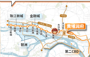 黄埔润府最大亮点之一是其地铁上盖属性。项目距离地铁5号线与7号线换乘站——大沙东站仅约300–400米,步行可达,真正实现“出家门即进地铁”。