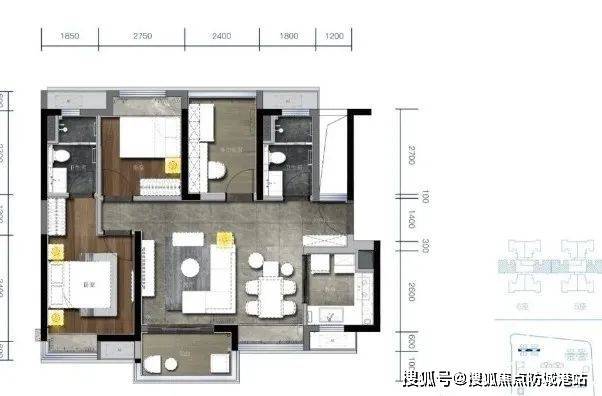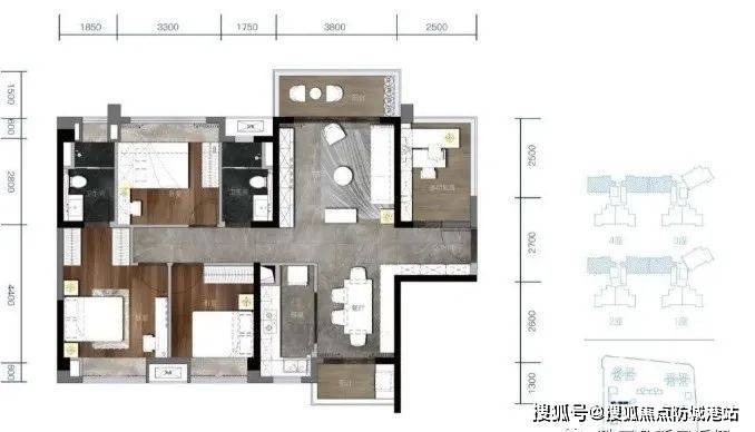 片区唯一115方四房带主套产品,双阳台设计,户型方正,南北对流