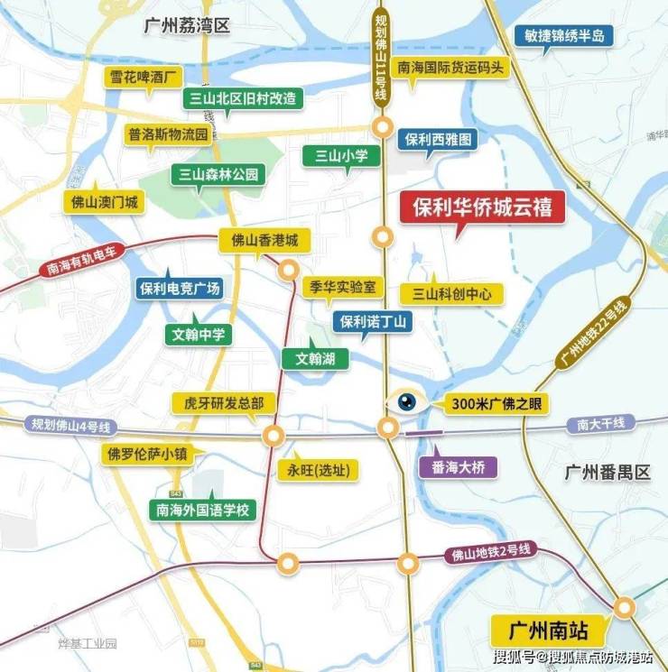 保利华侨城云禧是由保利及华侨城双央企联袂打造,地处佛山三龙湾-三山新城,位于千灯湖、广钢新城、广州南站三大黄金商圈交汇点,属于广佛交界一线区位。这也是保利在三山新城继保利西雅图、保利诺丁山两大住宅项目后,再铸精品,匠心打造的全新人居大盘。