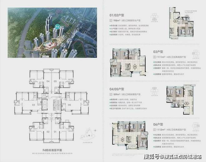 下面是4号楼的户型,两梯六户,面积有89-98-111-112