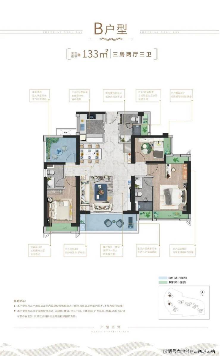 3.0户型匠心设计,室内空间采取双套房设计,将空间的奢阔尺度转化为人文的关怀深度;卫生间三分区规划,罕见的2.5卫豪奢配置,人性化关怀,细节成就长者美好生活,巨幕景观阳台,将一城盛景揽入眼底。