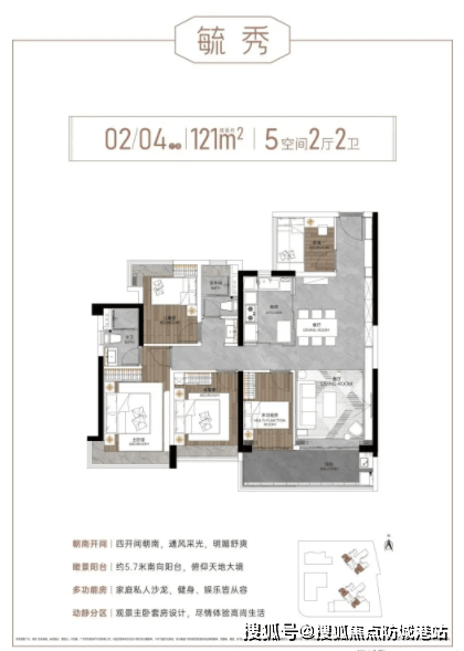 2. 建面约121㎡4+1房2厅2卫:二胎家庭舒适之选