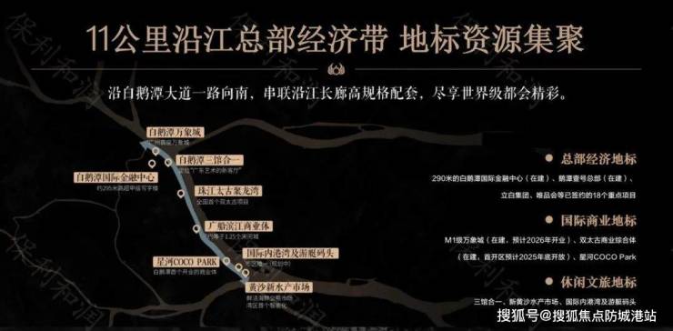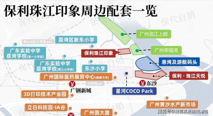 靠近保利珠江天悦,依托港湾将打造集休闲、娱乐、观光于一体的五大功能区,成为区域地标。并且项目背靠千亿级大健康产业平台——广州国际健康港,拥有众多高端商业配套,如约12万㎡星河COCOPARK、约14.45万㎡三馆合一、约10.7万㎡新黄沙水产市场等。同时,周边还有南方医科大学珠江医院、广州医科大学附属第二医院等医疗资源,保障居民健康。