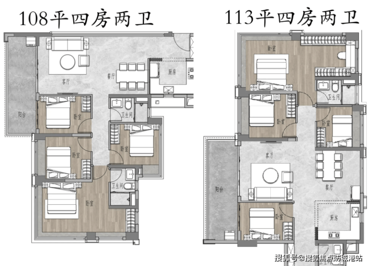 首次亮相的产品面积段覆盖69 - 113㎡的三四房户型。69平做了AB两种户型,西南向望幼儿园和小学。69A是传统的竖厅三房一卫,动静分区,客厅开间约3.4米,四开间全南向,三个卧室都有大面积飘窗;69B则类似保利雅郡的69方户型格局,从居住舒适度上来看,A>B,但B可以东北向望江。80平是69B的放大版,塞进了卫生间,做了主卧套间,南北对流。85平是69A的放大版,客厅开间3.7米,阳台进深2米。108平有长景观阳台、动静分区,客厅开间3.8米,主卧带小型衣帽间,L型采光面。113平是主流高实用率四房布局,有约40平方形会客厅,13平阳台,主卧衣帽间更大。