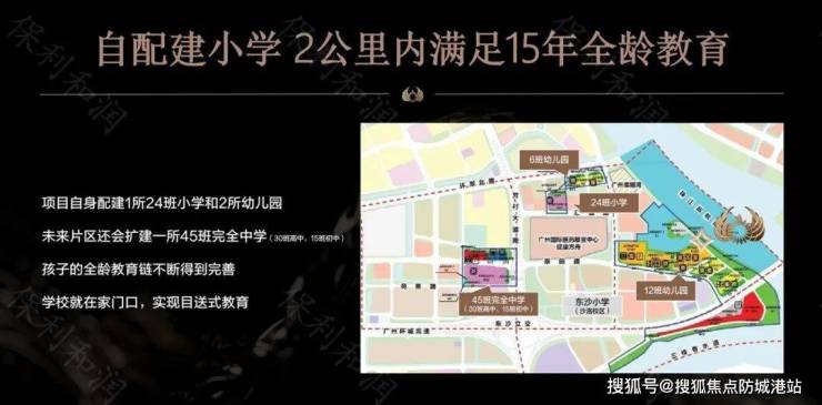 小区配建有1所幼儿园,南地块的保利珠江天悦有24班公立小学,并且确定由荔湾传统名校康有为小学承办,属于省一级公立名校。周边还规划有45班完全中学,2公里范围内可享受全龄教育圈,附近还有荔湾爱莎国际学校等优质教育资源。
