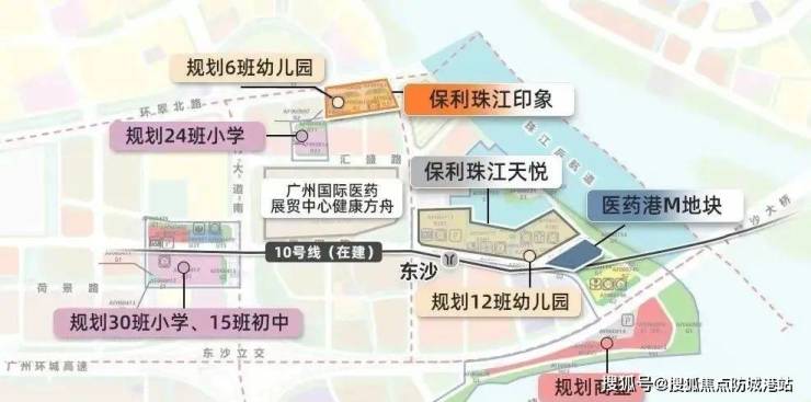 地铁方面,距离在建的10号线东沙站直线距离约700米(预计25年开通),可4站到达中大,6站到达滨江东,零换乘直达珠江新城。此外,还有规划的水上巴士及港湾码头(计划3年内完工),这将为业主提供多样化的出行方式。