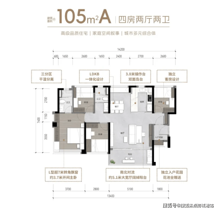 面向高端改善客群,支持14种空间组合方案,可灵活适配多代同堂、二胎甚至三代共居的家庭结构。