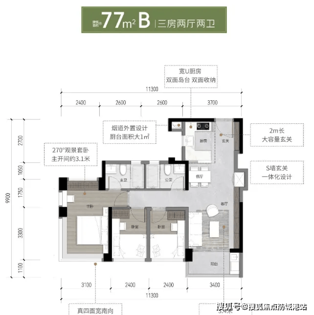 建面约77㎡ 三房两厅两卫|总价185-192万元