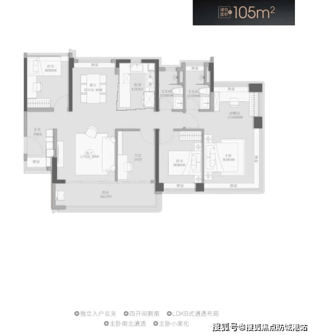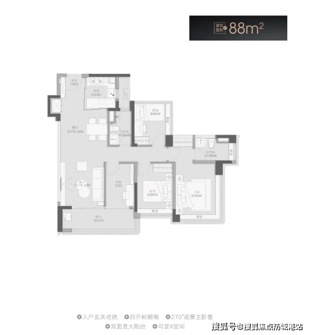 越秀·云悦推出的88-105㎡四房户型,实用率高达130%,提供了宽敞舒适的生活空间。特别是建面约88平的户型设计有双开间阳台、270°环幕景观主卧套房等特色;而建面约105平的户型则强调了南北对流的设计理念,营造出更加通风舒适的居住体验。