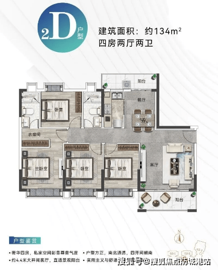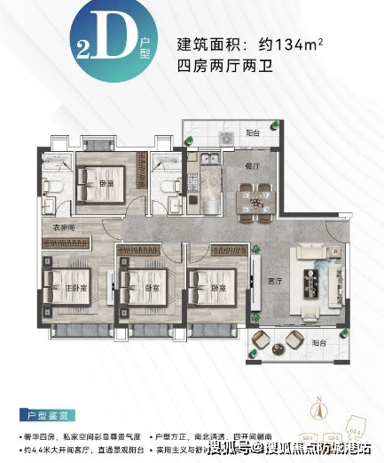 125平方米4房格局:此户型南北对流,空气能够自由流通,保持室内空气清新。客厅开间约4.2米,宽敞明亮,为业主提供了舒适的休闲娱乐空间。带入户玄关设计,不仅增加了收纳空间,还提升了入户的仪式感,让业主感受到家的温馨与尊贵。