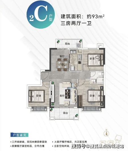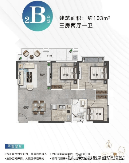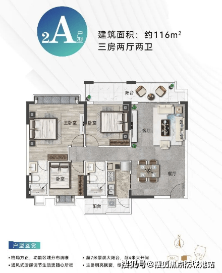 89平方米3房格局:该户型四开间朝南,充足的阳光能够洒进房间的每一个角落,让业主尽享温暖与明亮。约3.8米宽景阳台,视野开阔,可欣赏社区内的园林美景,仿佛将大自然引入家中。主卧带有独立卫生间,保障了业主的隐私与便利。