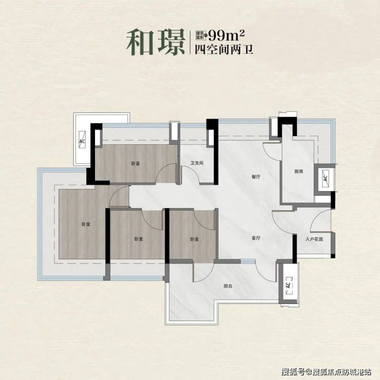 和璟户型为建面约99㎡新规四房两厅两卫,主打“四开间南北对流+四空间布局”设计,适配多人口改善家庭,实现“一步到位”的居住需求。该户型最大亮点是四开间南北对流,拥有13.8米超宽采光面,全明通透,空气流通性极佳,在湿热的广州,能够有效提升居住舒适度;LDKB一体化大方厅设计,空间开阔,四空间+两卫布局,满足多人口家庭的居住需求,可打造书房、儿童房、老人房等,适配家庭全生命周期成长;双面宽L型无柱阳台,东南向IMAX景观,可俯瞰社区园林与城市风光,视野开阔,同时兼顾晾晒与休闲功能,业主可在此享受惬意时光;超6㎡厨房空间,操作空间充足,可容纳多人同时操作,满足家庭烹饪需求;独立入户玄关设计,收纳空间充足,保障室内私密性,让入户空间整洁有序。