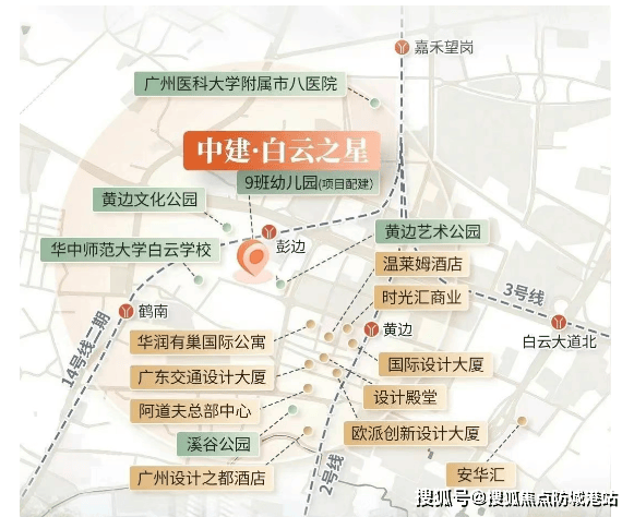 中建白云之星所在的黄边村区域,是一个集学区、交通枢纽和商业配套于一体的综合性改善大盘。项目周边交通便利,临近地铁2号线黄边站和规划中的地铁14号线彭边站,自驾出行也十分方便,通过空港大道等主要干道,可以快速到达白云新城及其他城市中心区。