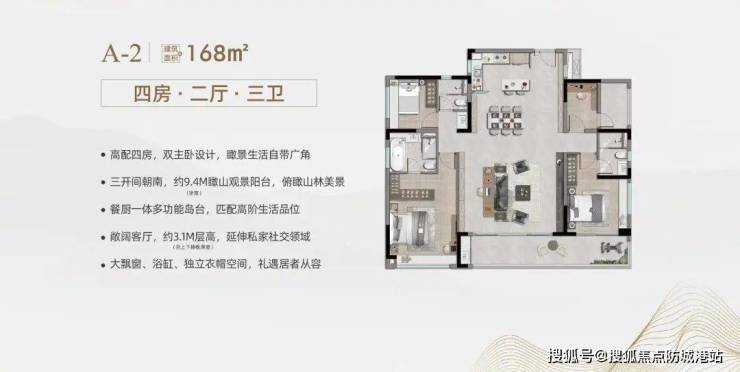 9栋:168平方米户型,两梯两户设计