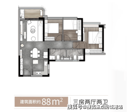 万象·荧曜 88㎡ 三房两厅两卫:这款户型虽面积紧凑,但功能齐全。四开间朝阳,拥有全面屏采光环幕视野,保证室内光线充足。LDK客餐厨一体化设计,让小空间也能拥有大格局。精研人体工学的教科书式收纳系统,充分利用每一寸空间,让居家生活井井有条。