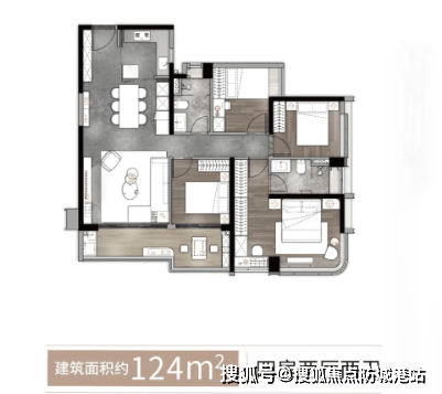 江幕·辰汐 124㎡ 四房两厅两卫:这款户型拥有270°环幕视野,5开间南向望江,畅享约20米拥江景观线。LDK客餐厨一体化设计,打破了传统空间的界限,形成了无分界的通透聚厅,极大地扩展了视觉空间感。L形江景阳台,面宽约7米,最大进深约2米,是观景、休闲的绝佳场所。观江超级主卧,定制江景梳妆台,超5米阔面开间,双向纵揽珠江风情,让每一天都在美景中醒来。
