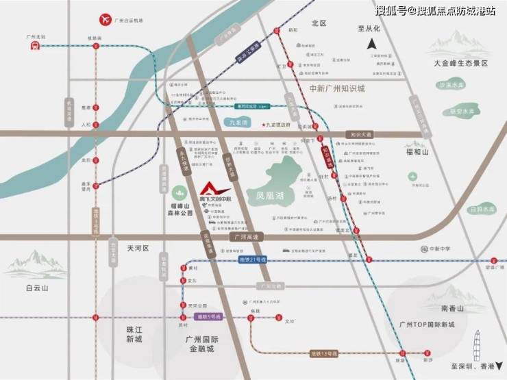 奥飞文创中心位于中新广州知识城南起步区,紧邻花莞高速出入口及凤凰湖,交通区位优越。
