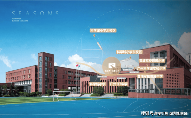 新世界·四季山水项目社区内自建12班幼儿园与托儿所,不出社区即可满足孩子的学前教育需求,既节省了家长日常接送孩子的时间,也保障了孩子上学途中的安全,给家长和孩子都带来了极大的便利。除了自建的学前教育配套之外,项目周边1公里范围内分布有多所优质小学,其中与科学城小学直线距离仅约277米,周边还有黄埔军校小学、黄陂小学等多所优质小学,丰富的小学教育资源,可充分满足家庭的小学教育需求。