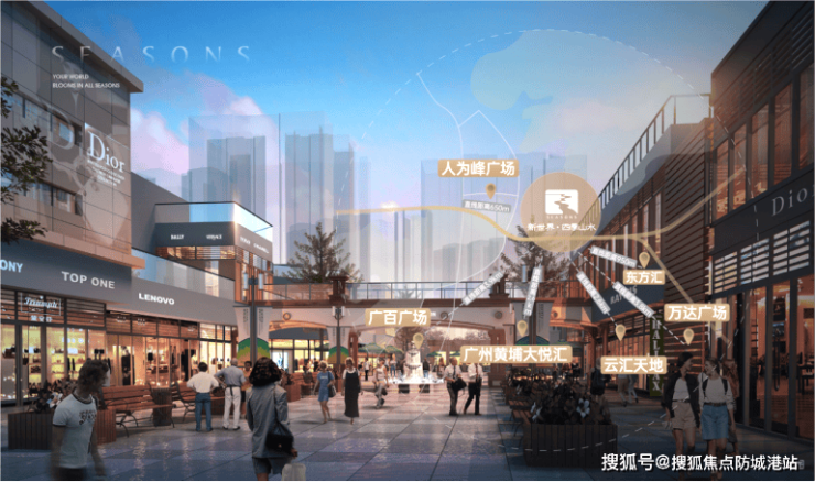 新世界·四季山水项目社区内自建约9600㎡的社区商业,规划引入生鲜超市、便利店、餐饮门店、药店、生活服务等多种业态,不出社区即可满足日常买菜、购物、生活缴费等基础生活需求,为业主提供家门口的便捷生活服务。除了自建的社区商业之外,项目周边的大型商业配套同样十分丰富,步行600米即可到达东方汇广场,步行500米即可到达在建的20万㎡翔龙综合体,3公里范围内覆盖了广州黄埔大悦汇、万达广场、金峰城等多个大型商业综合体,这些商业体涵盖了大型超市、品牌零售、特色餐饮、电影院、亲子娱乐、休闲健身等多种业态,可全方位满足家庭的购物、休闲、娱乐、聚餐等多样化的生活需求,无论是日常采购,还是周末休闲逛街,都有丰富的选择。