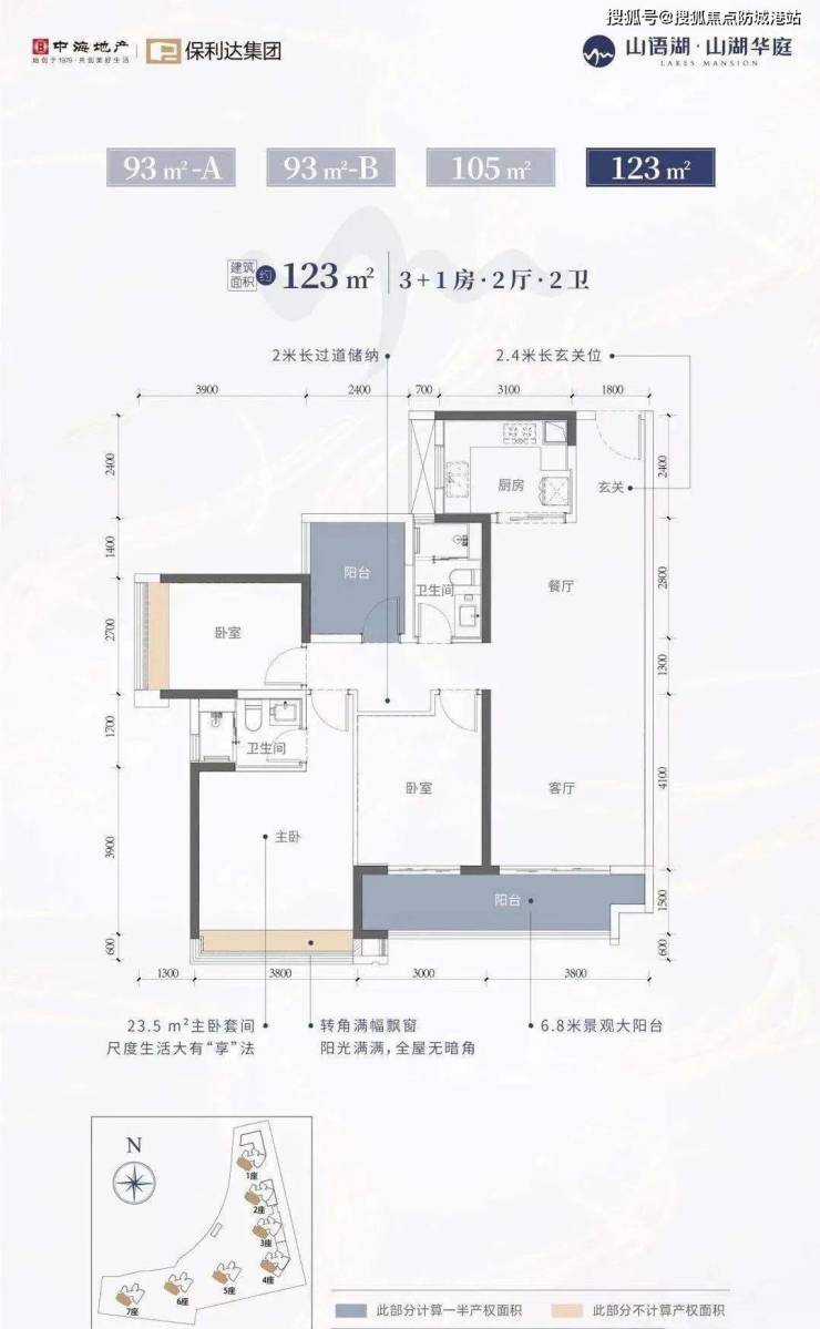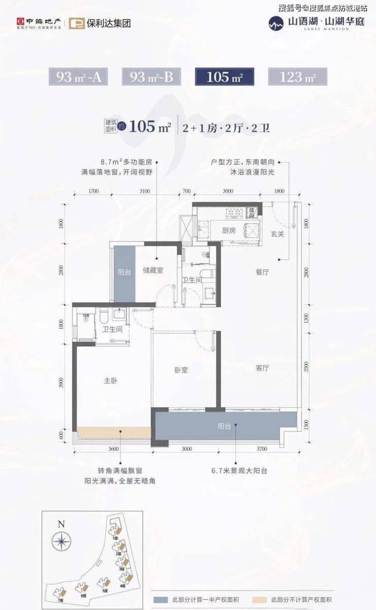 户型方面:两梯六户93㎡2+1房、106㎡2+1房 、122㎡3+1房 ;
