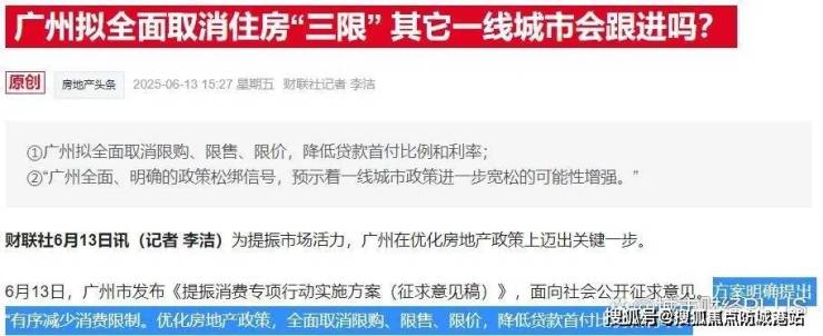 2025年6月,中国房地产市场迎来标志性事件:广州市政府正式发布《广州市提振消费专项行动施方案(征求意见稿)》,明确提出全面取消限购、限售、限价政策,并同步降低首付比例和房贷利率。这一政策不仅是对广州此前局部松绑的全面确认,更成为四大一线城市中首个彻底退出行政干预房地产市场的城市,释放出强烈的政策转向信号。