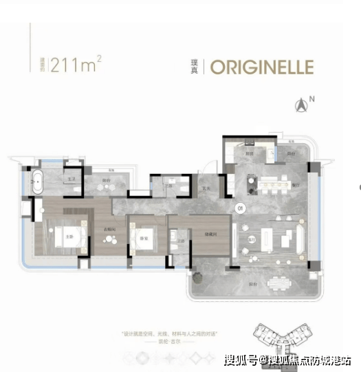215㎡户型:打造巨型 LDKB 空间,搭配南北双阳台与全飘窗设计,通透性无死角。景观阳台横跨客厅与次卧,面积相当于标准主卧套房,可打造专属空中花园;南向双套房布局,主卧包含休憩区、步入式衣柜、多功能区与 L 型大飘窗,仪式感与实用性满分。