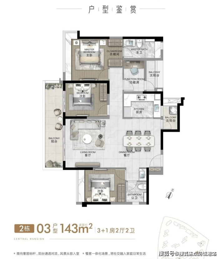6.1.5 建面143㎡四房两卫:大户型优选,四面朝南,视野无遮挡