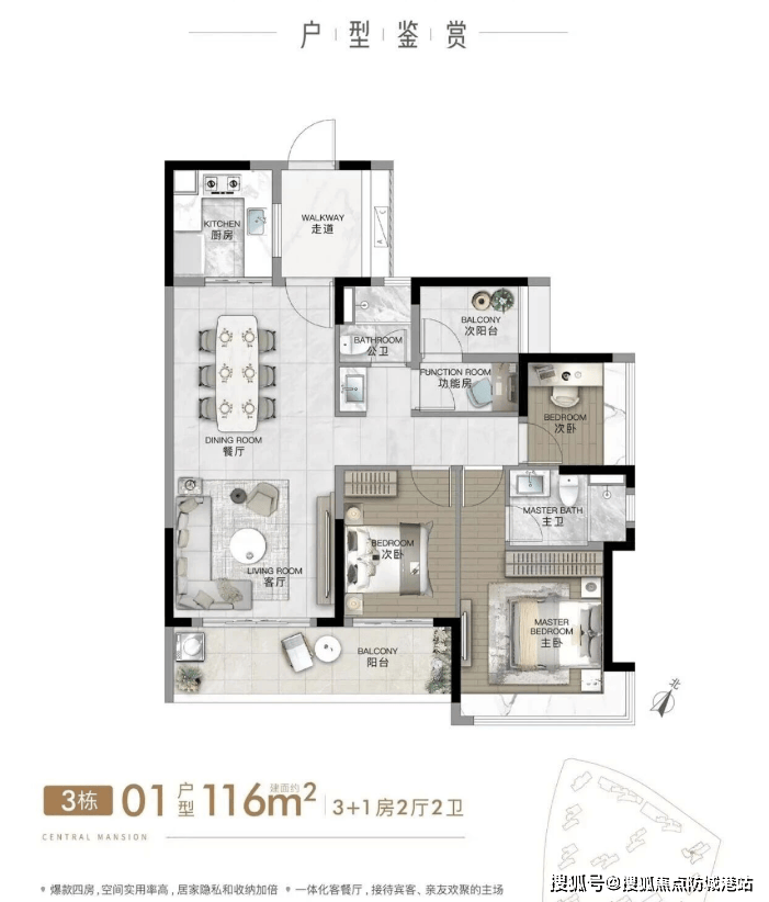6.1.2 建面116㎡四房两卫:空间实用,适配二胎家庭、三代同堂