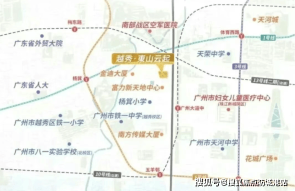 出行便利性是本项目另一大亮点。步行约700米可达地铁5号线五羊邨站,900米内覆盖杨箕站,双地铁加持已属难得;更值得期待的是,规划中的地铁10号线将在广州大道中设站,距离项目仅约400米,未来将无缝连接天河、海珠、荔湾等核心区域。自驾方面,项目紧邻广州大道中主干道,通过中山一立交快速接入东风东路、中山一路及内环路,无论是通勤珠江新城,还是前往白云、番禺,皆高效便捷。